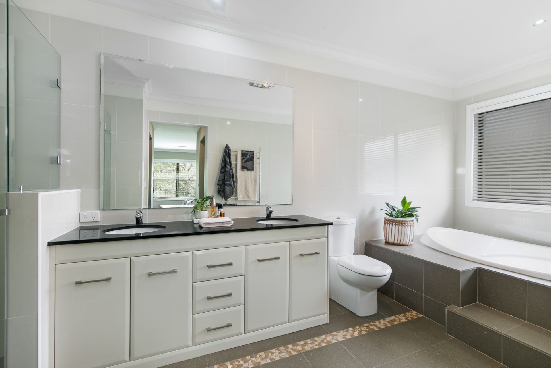 Inside, you'll find four oversized bedrooms, including a luxurious master suite with his and hers walk-in robes and a spacious ensuite featuring a spa bath, double vanity, and dual showerheads.
